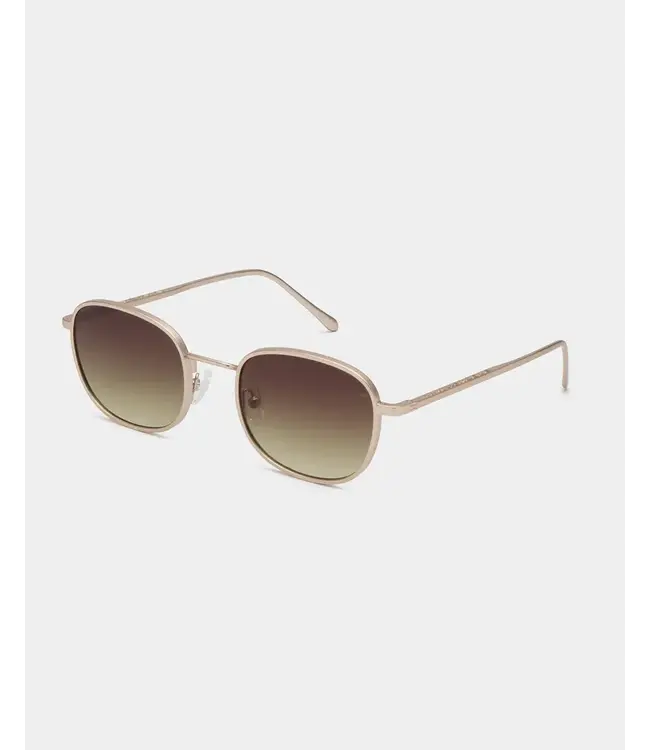 de Hello Matte Gold zonnebril van A.Kjaerbede – een elegant en opvallend accessoire dat luxe en moderne flair moeiteloos samenbrengt. Het mat goudkleurige montuur geeft een warme, verfijnde uitstraling met een subtiele metallic touch die elke outfit direct een stijlvolle upgrade geeft. De Hello straalt casual chic en eigentijdse klasse uit, waardoor hij perfect past bij zowel dagelijkse looks als zomerse city-outfits.