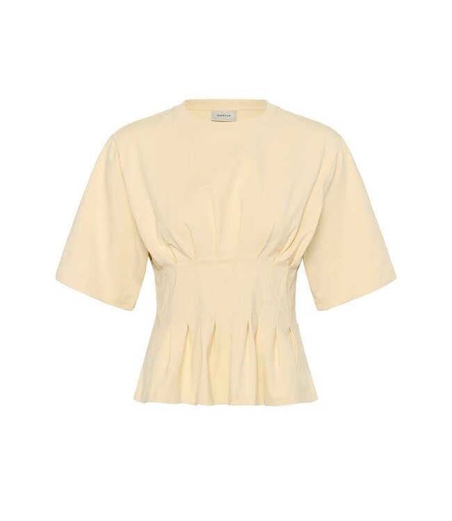 Het Gestuz GZinez T‑shirt is een elegant, minimalistisch item met ronde hals en plissé‑detail. Casual chic en perfect te combineren voor een nonchalante look die jouw stijl subtiel versterkt.