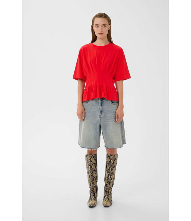 Ontdek de inez T-shirt van Gestuz een verfijnd en minimalistisch item dat een perfecte balans creëert tussen casual en elegant. Dit T-shirt is een subtiele eyecatcher dankzij de vrouwelijke pasvorm en de unieke plooidetails die de taille op een elegante manier accentueren.