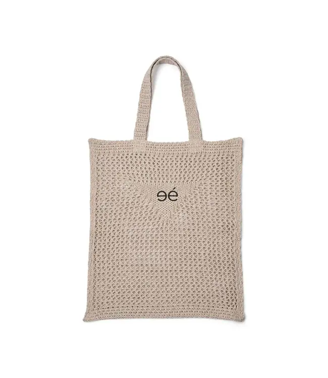 De knit tote bag van Esme Studios is de perfecte mix van stijl en duurzaamheid. Gemaakt van gerecycled katoen en polyester, met een opengewerkt breipatroon dat luchtig én trendy oogt. De tas is afgewerkt met subtiele logo-borduursels op de achterkant en is groot genoeg (45 cm hoog) om al je essentials stijlvol mee te nemen.