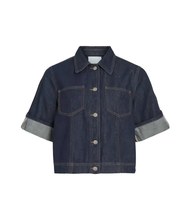 de ROUGE EDIT Short Sleeved Denim Shirt een minimalistisch en casual chique denim blouse met korte mouwen en knoopsluiting die jouw look een vrouwelijke twist geeft. Deze cropped denim top is een perfecte mix van elegantie en casual.