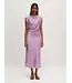De lichte glans en nonchalante kreukel geven de jurk van Edited karakter, terwijl de gedrapeerde halslijn en rechte fit zorgen voor een subtiele elegantie. Perfect voor een diner, bruiloft of gewoon omdat je er zin in hebt. Minimal effort, maximum stijl.