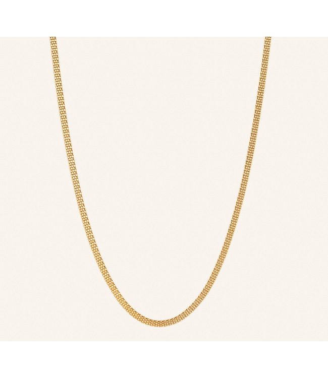 De Nora Necklace van Pernille Corydon is een verfijnde en tijdloze ketting in verguld sterling zilver met een elegant, minimalistisch design. De subtiel glanzende, platte ketting volgt de halslijn prachtig en voegt een chique accent toe aan elke look. Dankzij de verstelbare lengte (ca. 40–45 cm) draag je ‘m op de perfecte lengte.