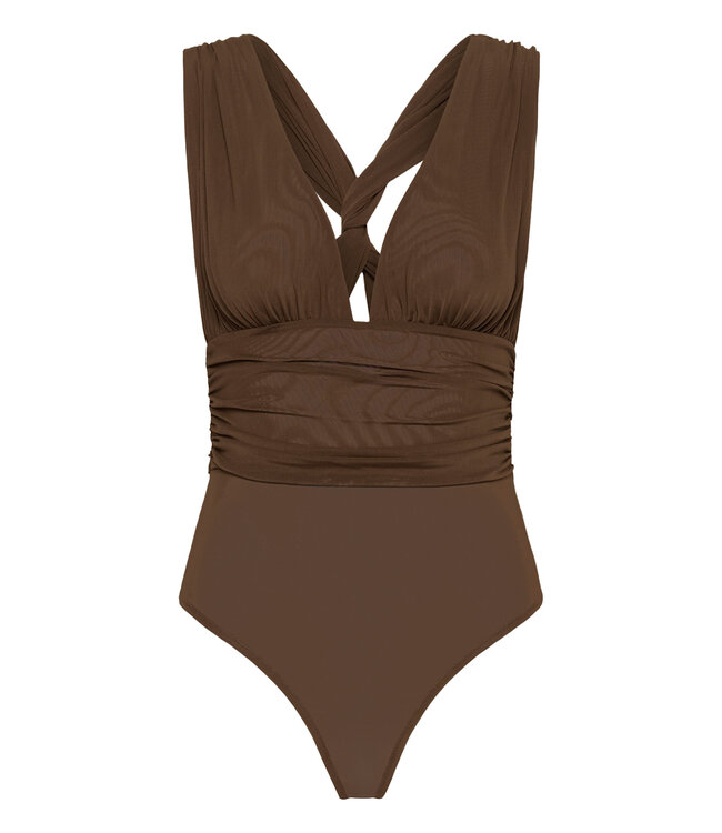 De samera Bodystocking heeft een aansluitende pasvorm met een diepe V-hals en gekruiste schouderbanden, wat zorgt voor een elegante en subtiel verleidelijke uitstraling. De geplooide taille accentueert het op een flatterende manier.